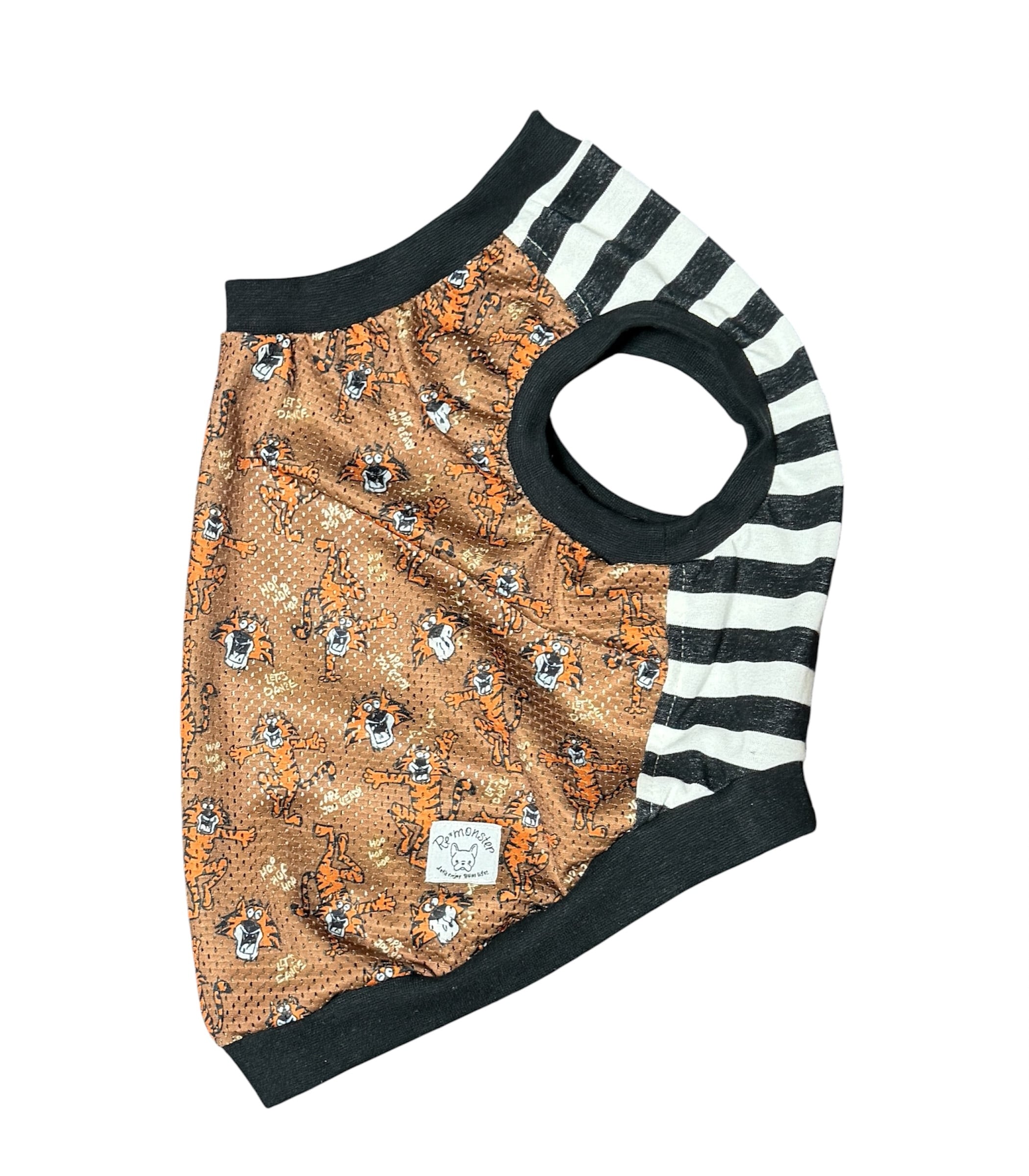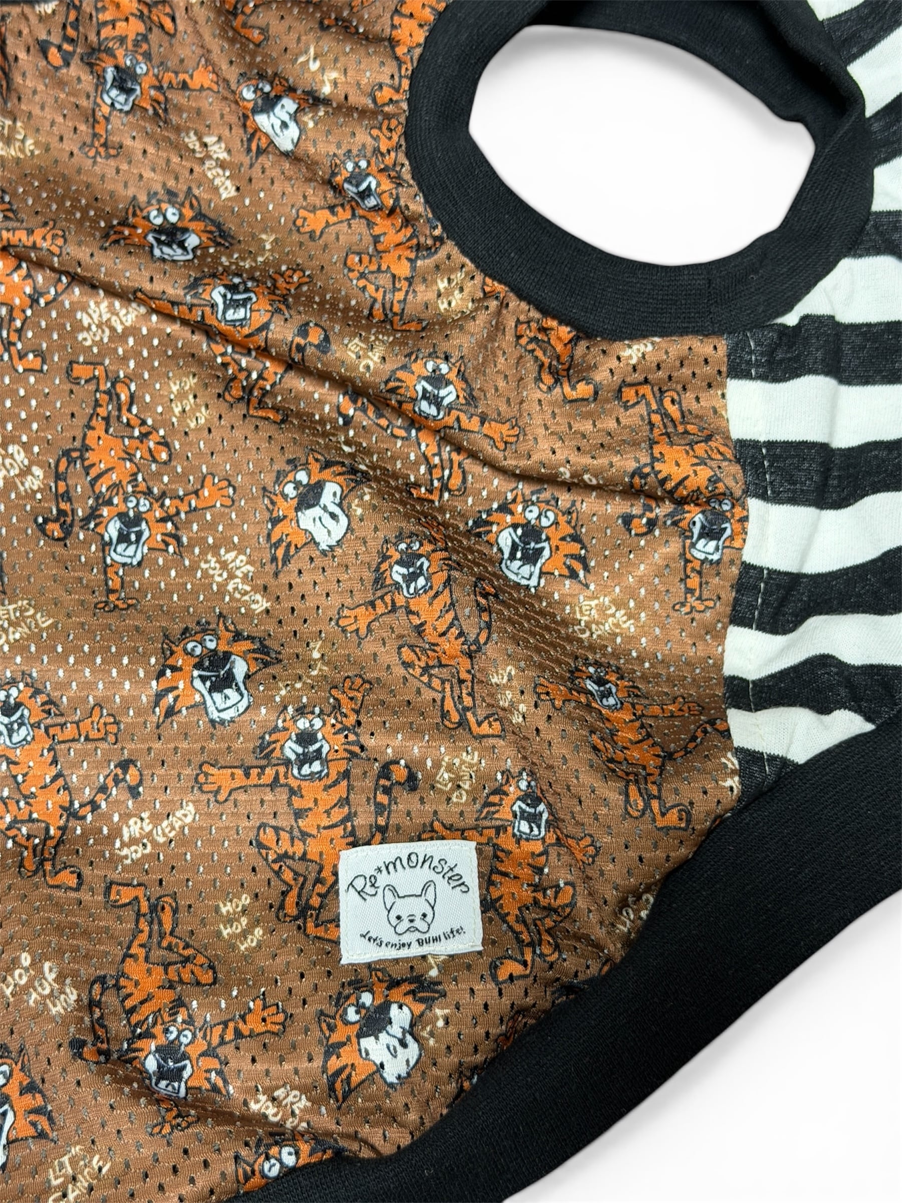 接触冷感のタイガー柄のメッシュ生地に防蚊加工のボーダー生地を合わせました!